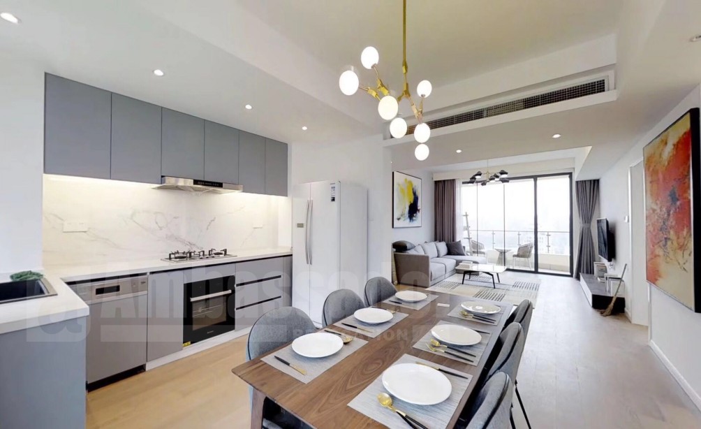 A fully furnished 3-bedroom apartment located on Weihai Road in Jing’an district of Shanghai. 5 minutes walking distance from West Nanjing Road station of metro line 13. It is close to Middle Huaihai Road shopping street Nanjing Road commercial area. This superior location has everything needed, shopping malls, restaurants, bars, cafes, recreational clubs, etc..