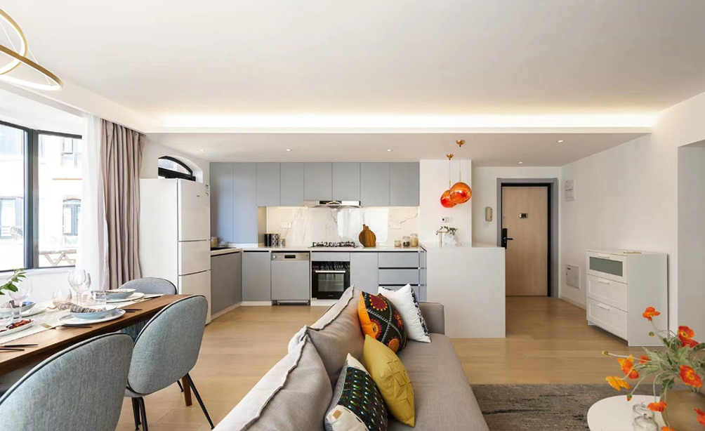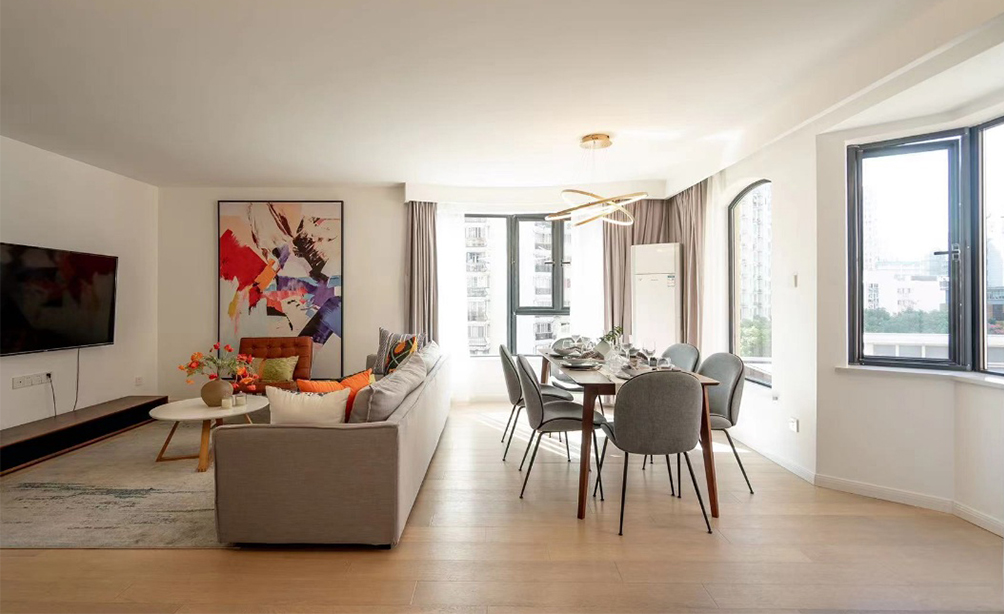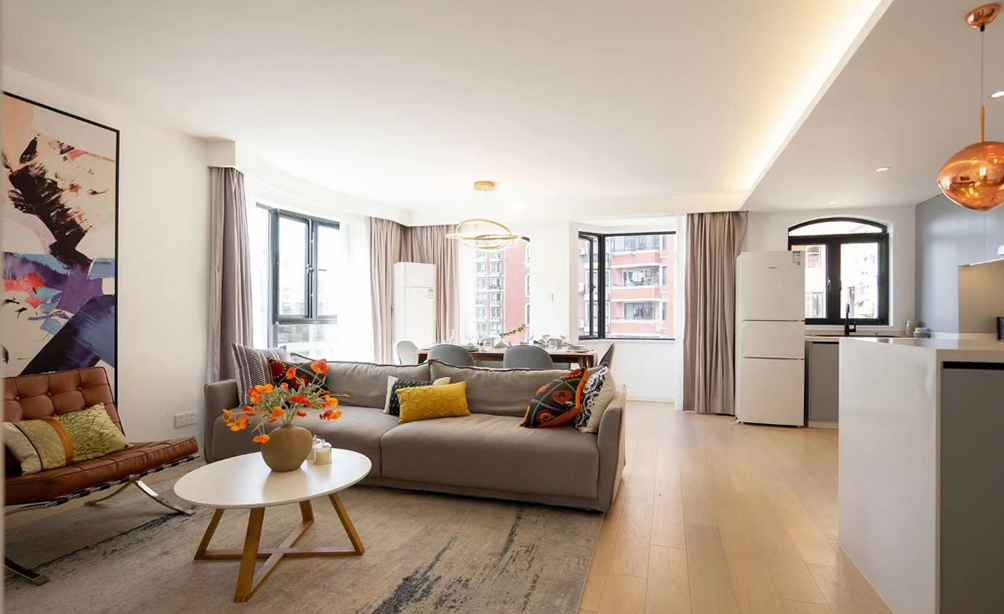 A tasteful 3-bedroom top-toof apartment located on West Jianguo Road in the former French Concession. 5 minutes walk to the metro line 9&12, 10 minutes walk to the shopping mall-Sun Moon Light. There are some western restaurants, bars and cafes nearby. The apartment is newly renovated and fully furnished with cozy furniture and equipped with wall heating.