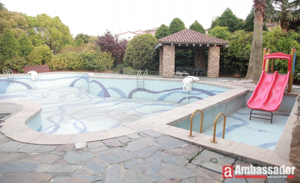 Located on Longdong Ave, about 6 minutes drive to Tomson Golf, close to Zhangjiang Hi-tech Park and International School.Palm Spring Garden has 160 units in total. Its Phase II has 51 detached villas. Featuring very bright rooms with a beautiful lake view, each unit has its own basement and garden. 70% of the compound is a green area. Floor to ceiling windows make the units grand and lovely. Furnishings and appliances are top quality. Heating and air systems are in good condition. 24 hour security patrol makes life carefree and relaxed. Great compound for large families with cars and pets.