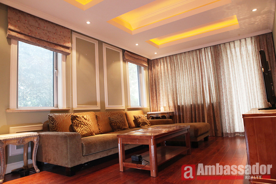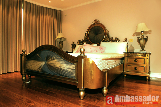 This special designed villa features modern decorated furniture of high quality. Elegant wooden floors are throughout the living room and the bedrooms. Half-open kitchen is well equipped with quality appliances. Special bedroom with bronze bed frame looks luxury and elegant. Suite bath room is attached to each bedroom.