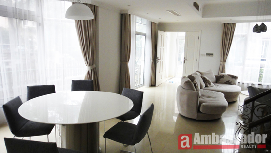 This stylish designed villa features brand new furniture of modern style. Elegant marble floors are throughout the living room. High quality wooden floors are throughout each bedroom. Kitchen room is well equipped with quality appliances. French windows and floor to ceiling windows are fitted in different rooms which provide a beautiful view of the garden.