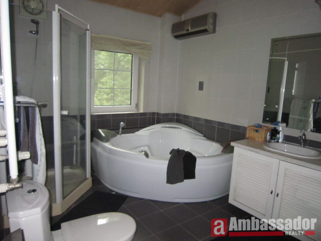 This newly decorated villa features specially designed living room with floor to ceilng windows leading to a huge backyard. Elegant marble floors are throughout in each room except the bedroom. Bay windows in the airy bedroom makes you enjoy the aboundant sunshine. Modern kitchen is well equipped with quality appliances. A huge tub in the bathroom makes you enjoy bathing.
