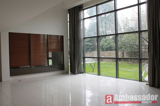 This amazing villa features modern furniture, nice layouts and stunning decor with under floor heating. Spacious living room with glass window wall offers you a beautiful view of the lush greens. Airy kitchen room is well equipped with quality appliances. Bright bedroom with floor to ceiling windows leads to a huge garden. A hidden wardrobe in the bedroom makes the space much larger. Furniture can be put in according to your requirement.