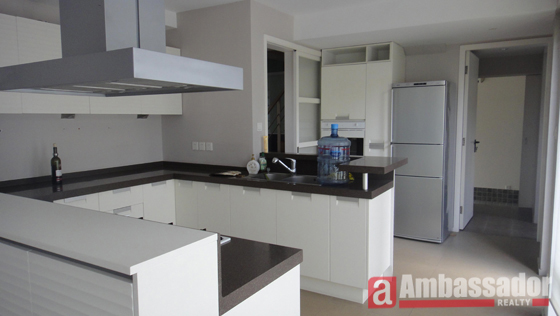 This elegant villa features modern furniture, nice layouts and good system with under floor heating. Spacious living room with glass window wall offers you a beautiful view of the lush greens. Tidy kitchen room is well equipped with quality appliances. A large bathroom makes you enjoy taking a bath while reading your newspaper in a tub. Furniture can be put in according to your requirement.