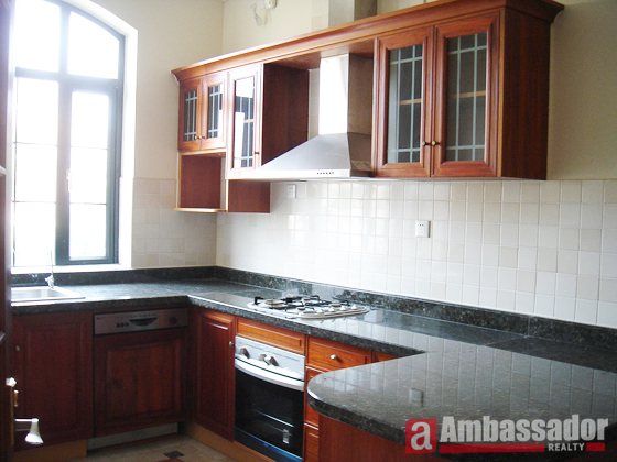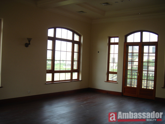 This luxury villa is well decorated with European style furniture of high quality and wooden floor throughout. Spacious living room with a fireplace makes you feel comfortable in the cold winter. French windows are one of the highlights. Airy kitchen room is well equipped with quality appliances. Furniture can be put in according to your requirement.