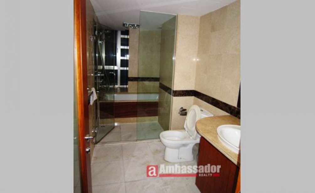This beautiful apartment in shanghai features a large living space with wooden floor throughout. Airy bedroom contains bay windows, a table, a chair and a wardrobe. Bedroom has its en suite bathroom. Tidy kitchen room is well equipped with quality appliances. Furniture can be put in according to your requirement.