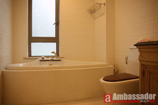 This 3 bedroomed apartment in shanghai is well-designed of western style.Royal style furniture makes you feel like living in the ancient western palace.Fully impressive furniture.Huge kitchen with dinning room.Full modern equipment in the kitchen.Bay windows in each bedroom.Sunny living room with french windows.