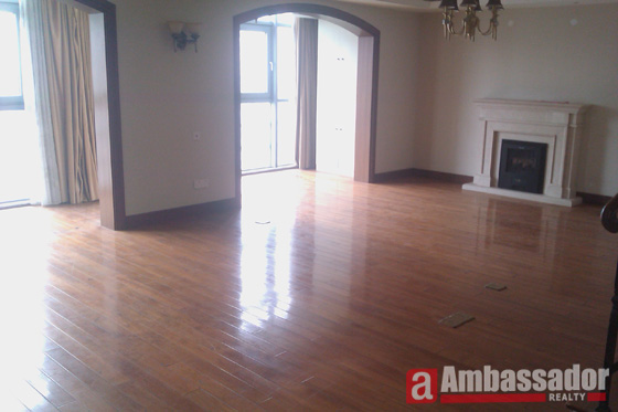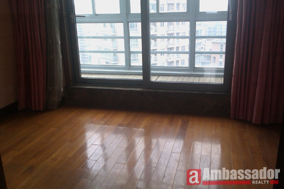 This 3 bedroomed apartment in shanghai features spacious living room with a fireplace. French windows in the living room lead to a huge balcony. Some of the rooms are empty and furniture can be put in according to your requirement.