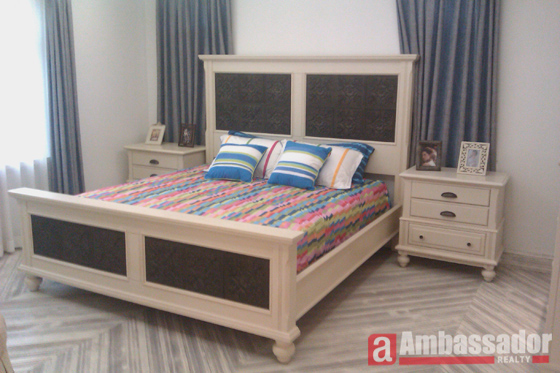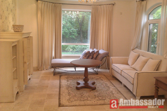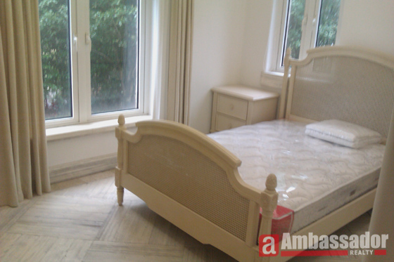 This brand new villa features Western royal style furniture of high quality. Special designed living room with floor to ceiling windows provides you with a beautiful view of the garden. High quality marble floor in each room. Modern kitchen room is connected with a dining area. Warm bedrooms with suite bathrooms.