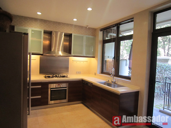 This luxurious villa features superb furniture in each room. A spacious living room with French door leads to the kitchen room in Western style. Huge bedrooms have en suite bathrooms. Surrounded by a cute rear garden, this villa provides you with a beautiful view of lush greens.