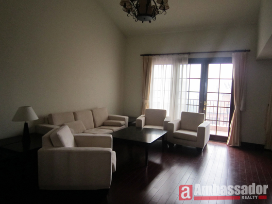 This lovely apartment in shanghai is in an international compound. It features well-designed and fully impressive furniture. Sunny living room with Frech windows leads to a huge balcony. Elegant wooden floors are throughout in the living room and bedrooms. Western style kitchen is fitted with high quality modern equipment.