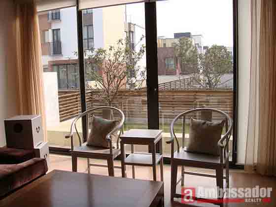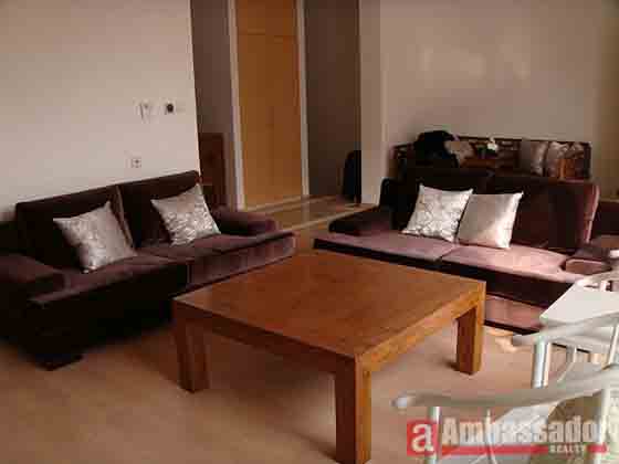 Spacious living area with modern /antic furnishings, floor to ceiling windows flooded with natural light, modern kitchen with dinner area, comfortable and airy.