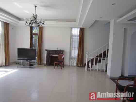 Huge living room is the biggest highlight of this villa. Elegant marble floors are throughout in the living room. Full of high quality furniture. Dining area is connected with the open kitchen of Wstern style fitted with qualiaty equipemnt. Spacious bedrooms with suite bathrooms. Green plants and flowers surrounded the villa which make the villa much lovely.