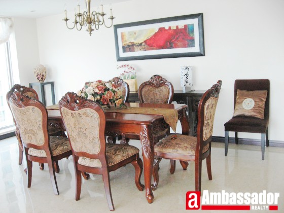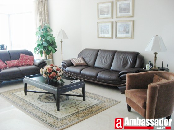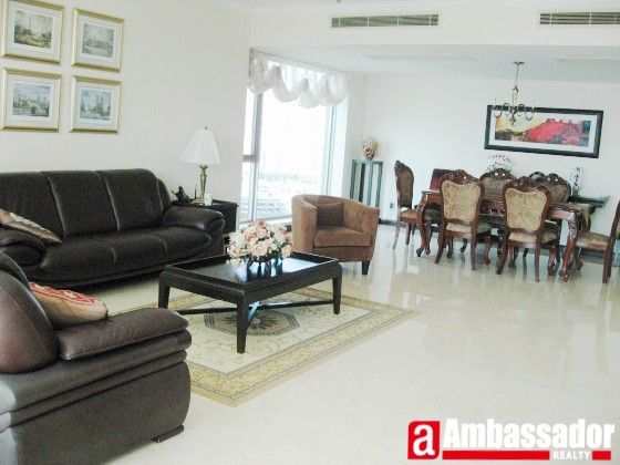 Spacious living room with leather furniture.Bright and sunny.Special dining area with full glass wall.Modern kitchen with fully equipped.Traditional furniture in the whole apartment.Sunny bedroom with full glasses wall.Elegant bathroom in each room.