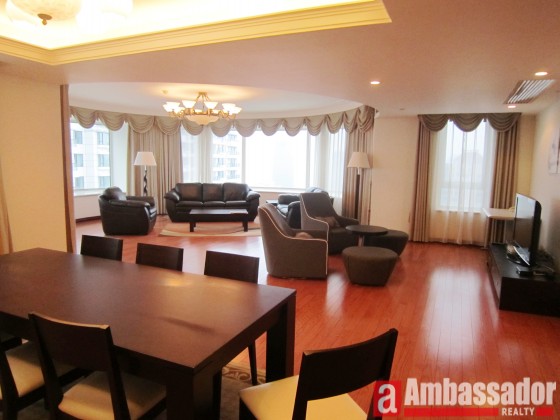 Special designed apartment in Lujiazui.Half round living room is the biggest highlight in this apartment.This area is full wall glasses designed as bay windows.Luxurious furniture in each room.Amazing tub in the master bathroom.Nice view of Luijiazui and Huangpu River.