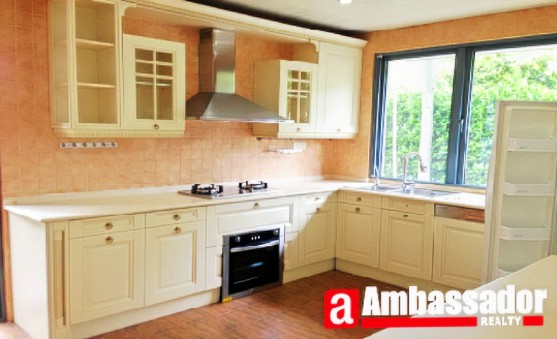 Super international compound in this area.Well decorated,full of high quality furniture.Spacious living room is sunny and airy.Western style open kitchen with a full of Chinese wooden furniture dining area.Bright bedrooms make you much comfortable.Lovely yard with an amazing pool for your resting or feeding some golden fishes.