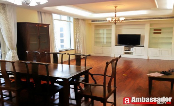 High floor in Gubei Area.International and cute compound.Fully furnished of newly decorated.Chinese wooden furniture in this apartment.Bay windows in the living room.Cool kitchen with a spacious dining area.French windows connecting the dining area and balcony.Huge bedrooms with bay windows.Special washroom with an amazing tube.