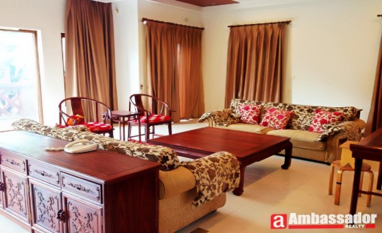 Superb villa in this area.Wooden wall make this house diachronic.Fully furnished of tranditional Chinese wooden furniture.Amazing living room with glasses wall,bright and sunny.Western style open kitchen with a Chinese style dining area.Huge shelf in the dining area for stoving vertu.Big and bright bedrooms make you much comfortable.Huge yard surround the house share you high standard of enjoyment.