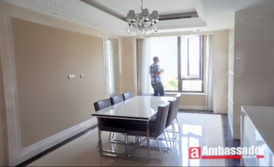 Brand new apartment, never rented. Standard decoration by the developer, with floor heating and central airconditioner. Also never used furniture. Impressive space and modern and western style kitchen with microwave, oven.