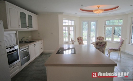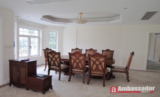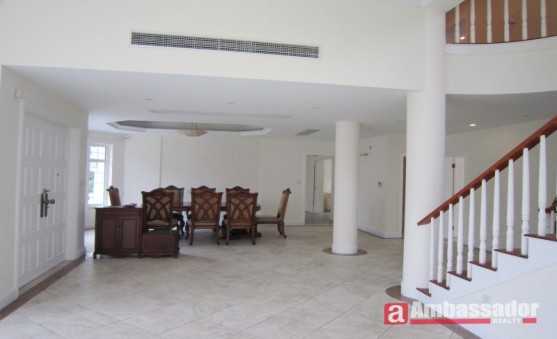 Amercian style villa.Brandnew house in this compound.Newly decortaed without any furniture.Special designed living room with nice wall windows.Open kitchen besides the lovely dining area.Each bedroom with its suite bathroom.Elegant marble floor in this house.Small yard surrounded this house.Samll river besides this house which make this house much lovely.