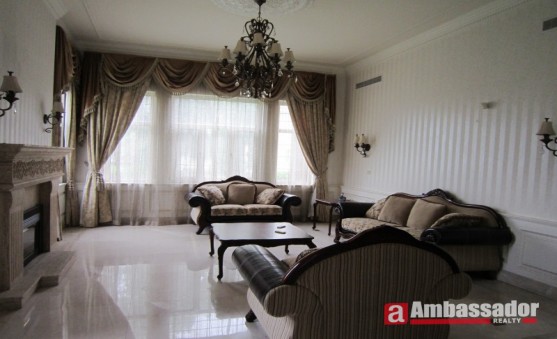 Very bright house in this compound.Elegant marble floor in this house.Special designed and well decorated.Big living room with a nice fireplace.Open kitchen full of modern and western style kitchen.Amazing drop lights in the house.Lovely dining area besides the kitchen.Each bedroom has its own bathroom.Nice garden surrounded this house.