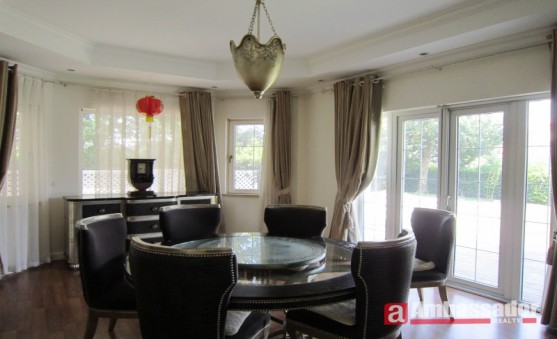 Luxurious decorated and furniture in this villa.Newly decoration and huge living room.Special designed living room and dining room.Fireplace in the living room.Open kitchen full of modern equipments.Lovely bedrooms with suite bathrooms.Tub in the master bedroom.Green yard surrounded this house.This villa will provide you high quality of enjoyment.