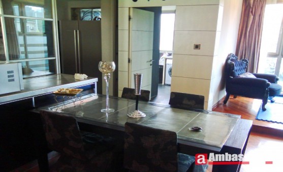This apartment is so delicated decorated, colorful sofa, red wooden floor, black wall, white kitchen, high quality furniture,ariy bedrooms with suite bathroom,make you feel you live in a dreamy world.