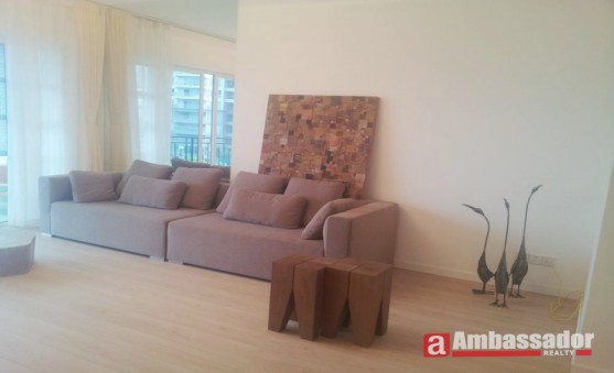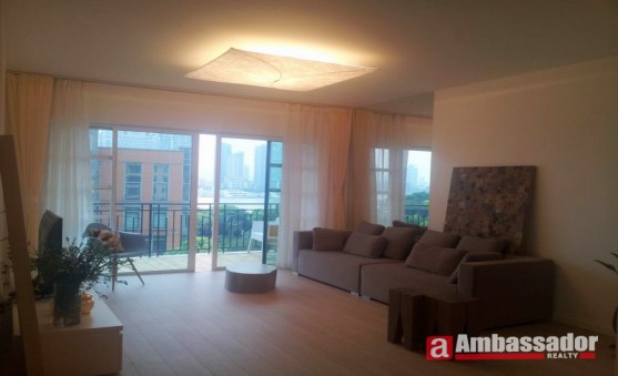 Newly decorated apartment full of Ikea style furniture.Very high floor,nice view of this area.Light style wooden floor in each room.French windows make this living room much brighter.Modern kitchen with high quality equipments.Each bedroom with suite bathroom.Bright and airy are the biggest highlight of this elegant apartment.