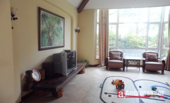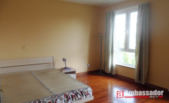 This gorgeous four bedroomed apartment with central air conditioner inside. Modern style furniture and decoration. Huge living room with high ceiling. Big full glass windows bring more light. Very nice big private garden is quite suitable for family to live there.