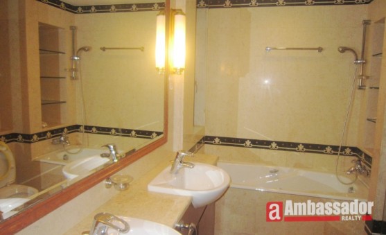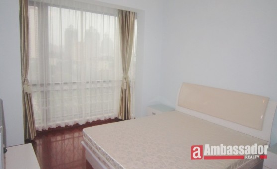 Newly decorated apartment in this area.Very high floor and bright apartment.Full of high quality furniture.Sunny living room with special designed glasses wall.Elegant wooden floor in this apartment.Spacious dining area besides the cool kitchen.Bay windows in each bedroom.Tub in the master bedroom.