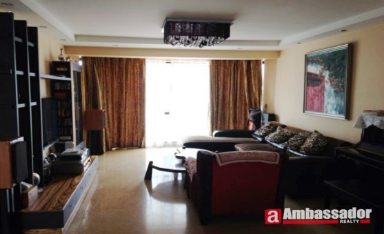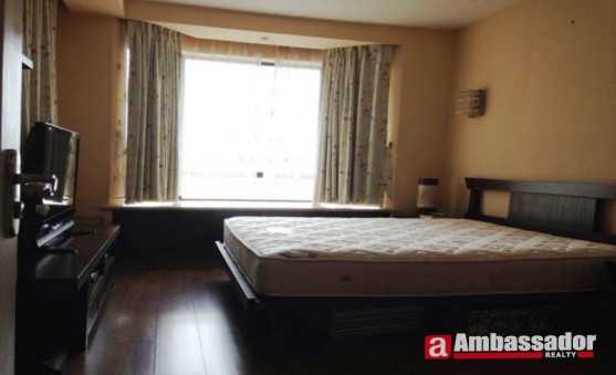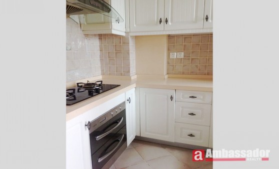 This spectacular two bedroom has spacious living room and dinning place. The whole apartment is special designed.Tranditional wooden style furniture and nice ketchen with oven inside. Newwer than most of the other apartments in this compound.