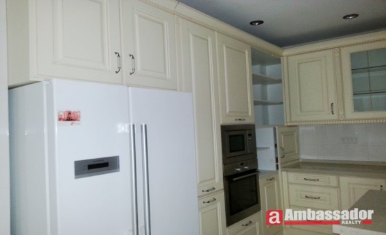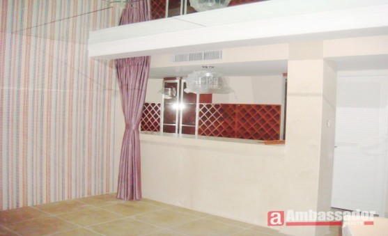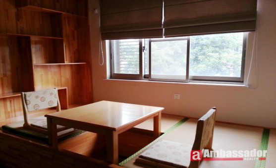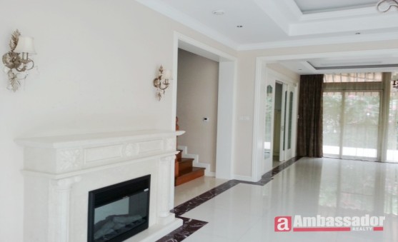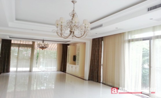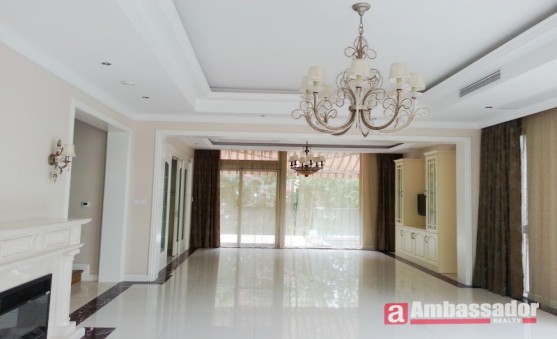Multi-level four bedroomed villa with large livng space with floor to ceiling windows enjoys a plenty of natural light, dark red wooden floors throughout, European style furnishings.