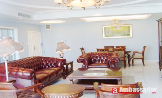 This fantastic 3-bedroom apartment features antique Chinese style furniture, especially suitable for those who likes Chinese culture. With high quality of red wooden furniture, comfortable leather sofa, and dark wooden floors throughout, you must be enjoying the comfortable lifestyle here!