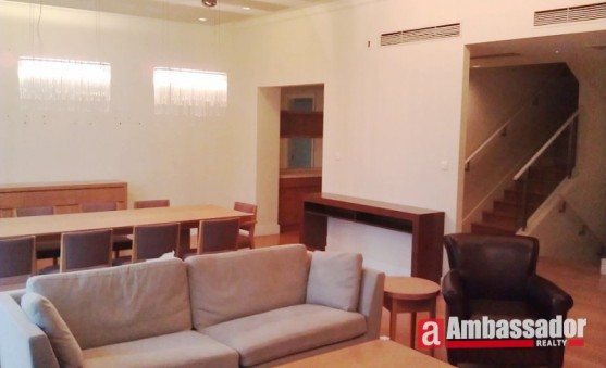 impressive entrance hall leading to a beautiful and expansive living room dotted with a streamlined ceiling lamp, making the perfection still more perfect. A huge and long table in the dinning area is suitable for a big family to have a family party. Stairways to the second floor is a airy bedroom with suite bathroom for you to enjoy your private space.