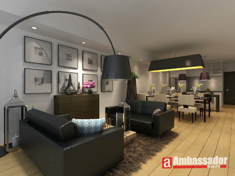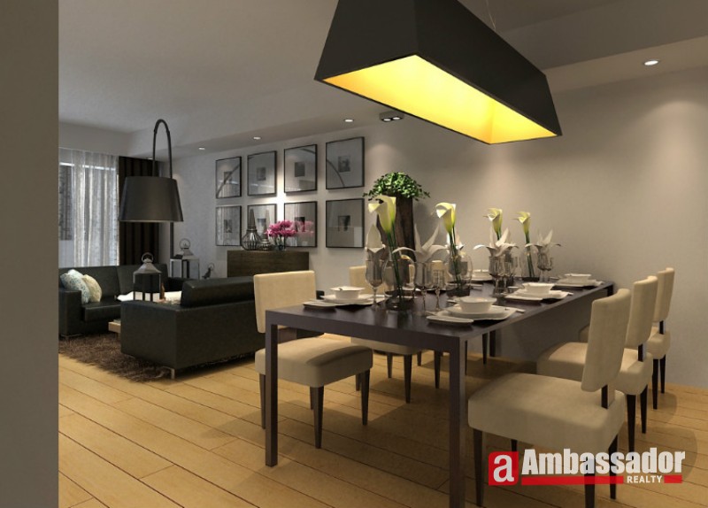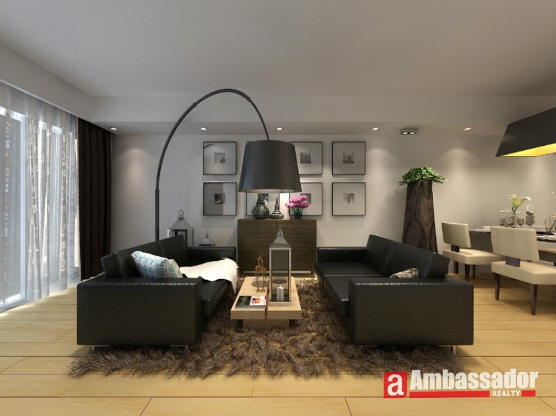 Cozy living room covered with wooden floor and soft carpet.Well-furnished with exquisite furniture and warm-colored light. Lovely Designed in elegant western style.Enjoys ample sunshine with floor-to-ceiling window in the living room.