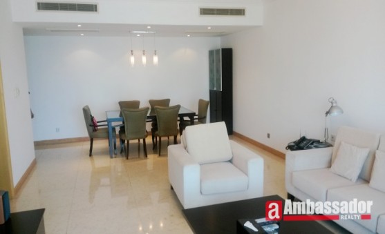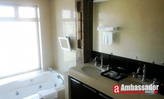 This fantastic 3-bedroom apartment features spacious living room with marble floors throughout leading to a cute dinning area, a comfortable bathroom with a massage bathtub, airy and bright bedroom with floors to ceiling windows, and a kitchen room with well-equipped appliances.