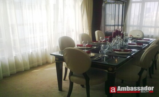 Fantastic duplex serviced apartment features elegant stylish interior design with spacious layout perfectly matched with exquisite furniture in western style.the spacious western style dinning room with long banquet table is a highlight of this property.High quality carpet covers thoughout the unit with special designed wooden stairs leading to 2nd floor.