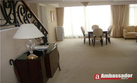 elegant duplex serviced apartment features graceful decoration with light-colored furniture.Cozy living room connects to a nice dining area.Warm bedrooms upstairs offer you quiet living envirionment.