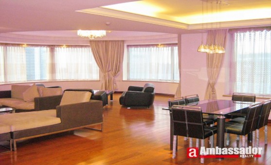 Special designed apartment in Lujiazui.Half round living room is the biggest highlight in this apartment.This area is full wall glasses designed as bay windows.Luxurious furniture in each room.Amazing tub in the master bathroom.Nice view of Luijiazui and Huangpu River.