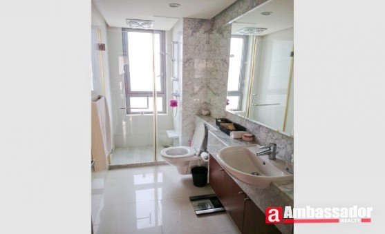 This well decorated apartment will provide you high standard enjoyment.Full of nice Ikea style furniture.Elegant marble floor and wooden floor in this apartment.Nice view of this downtown.Spacious dining area besides the modern kitchen.Each bedroom has its own bathroom.Huge balcony shares you a nice resting area.