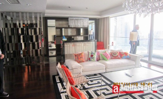 Luxurious decorated apartment.Elegant marble floor in each room.High quality of western wooden style furniture in each room.Huge sunny and airy living room.Warm kitchen with fully modern equipped.Spacious dining room with French windows.Bay windows in each bedroom which make the room warm and sunny.Good sized bedrooms with luxurious bathroom.Very nice view of Huangpu River.