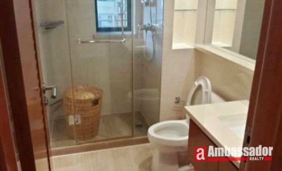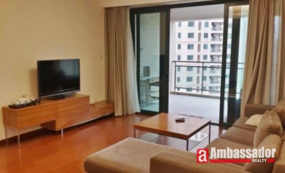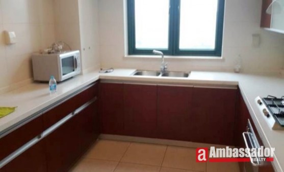 An exquisite apartment with floor heating,Spacious living room connecting to a balcony with a nice view of lush greenery.Well-equipped modern kitchen leading to a lovely dining area.Being surrounded by lush greenery,the living environment is really great
