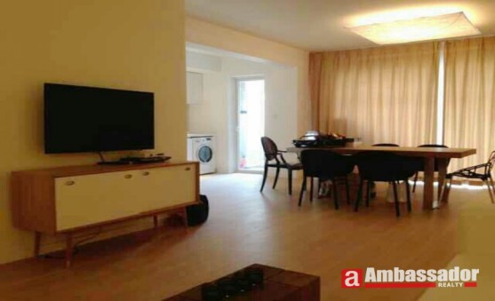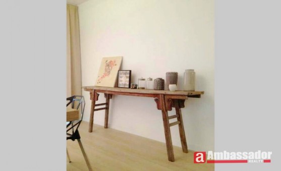 Spacious living room with floor to ceiling window flooded with natural light. Modern style furnitures fully furnished. Modern kitchen besides the cute dining area.