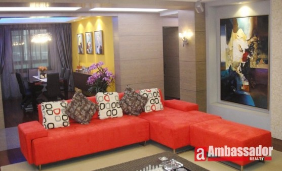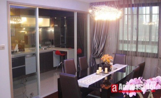This 4-bedroom apartment features elegant decoration with exquisite furniture.Cute kitchen leading to a nice dining area which connects to a beautiful living room with cozy sofa in white color lovely matched with exquisite red carpet.
