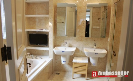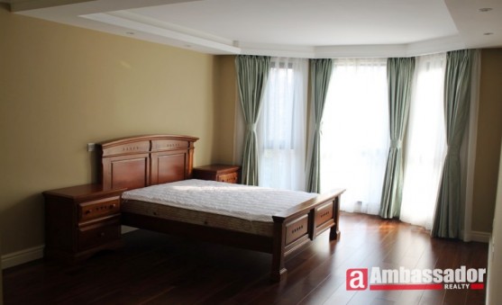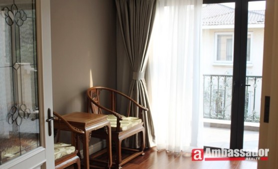 Newly decorated villa.Bright and sunny living room.Elegant marble floor in each room.Partially furnished.Bay windows in the airy living room.Modern kitchen with fully equipped.Spacious dining area besides the French windows.Warm bedrooms with suite bathrooms.Small garden around the house.