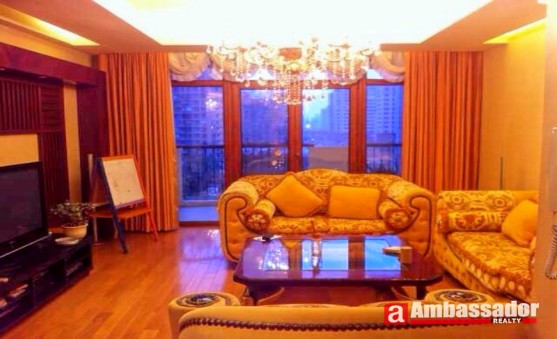 High floor in Gubei Area.International and cute compound.Fully furnished of newly decorated.Chinese wooden furniture in this apartment.Bay windows in the living room.Cool kitchen with a spacious dining area.French windows connecting the dining area and balcony.Huge bedrooms with bay windows.Special washroom with an amazing tube