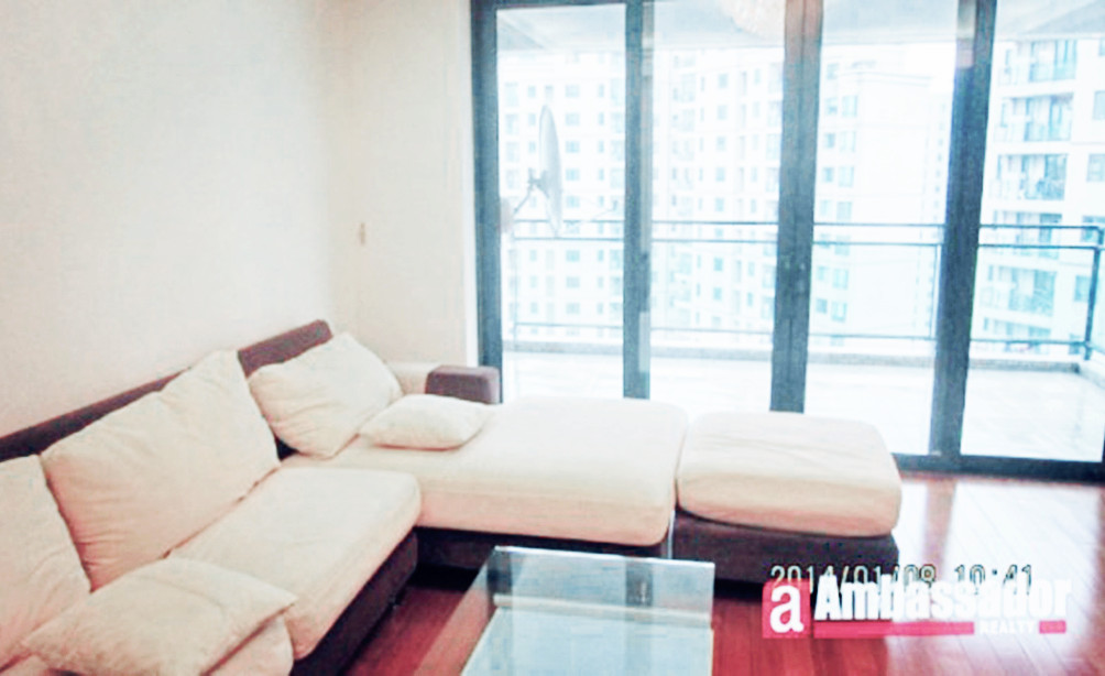 An exquisite apartment with floor heating,Spacious living room connecting to a balcony with a nice view of lush greenery.Well-equipped modern kitchen leading to a lovely dining area.Being surrounded by lush greenery,the living environment is really great