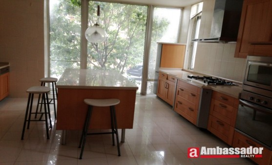 Huge living room is the biggest highlight of this villa.Elegant marble floor in the living room.Full of high quality furniture.Open kitchen with western style equipemnt.Specail dining area with French windows.