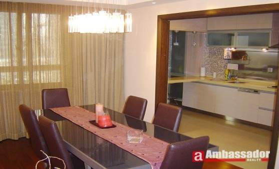 This 4-bedroom apartment features elegant decoration with exquisite furniture.Cute kitchen leading to a nice dining area which connects to a beautiful living room with cozy sofa in white color lovely matched with exquisite red carpet.Bedrooms uptairs enjoy quietness provide you with a peaceful place to rest.