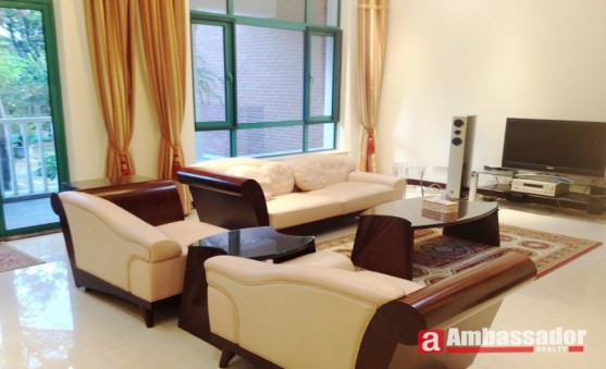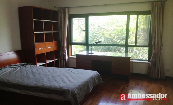 Bright and spacious four bedroomed villa with luxury wooden floors, contemporary kitchen flooded with natural light, balconies overlooking at the beautiful green sceneries. Nice villa town house for rent in Shanghai.